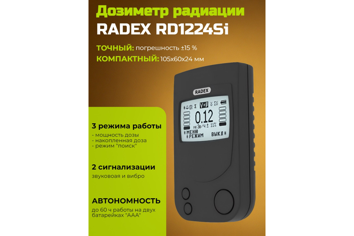 Компактная модель для бытового использования — дозиметр "RADEX RD1224Si" не является профессиональным оборудованием. Для его использования не нужно обладать высокой квалификацией в области радиобиологии. Устройством выполнено в небольшом корпусе, оснащено ЖК дисплеем с понятной системой индикации. Портативный дозиметр можно носить с собой в сумке или возить в машине.