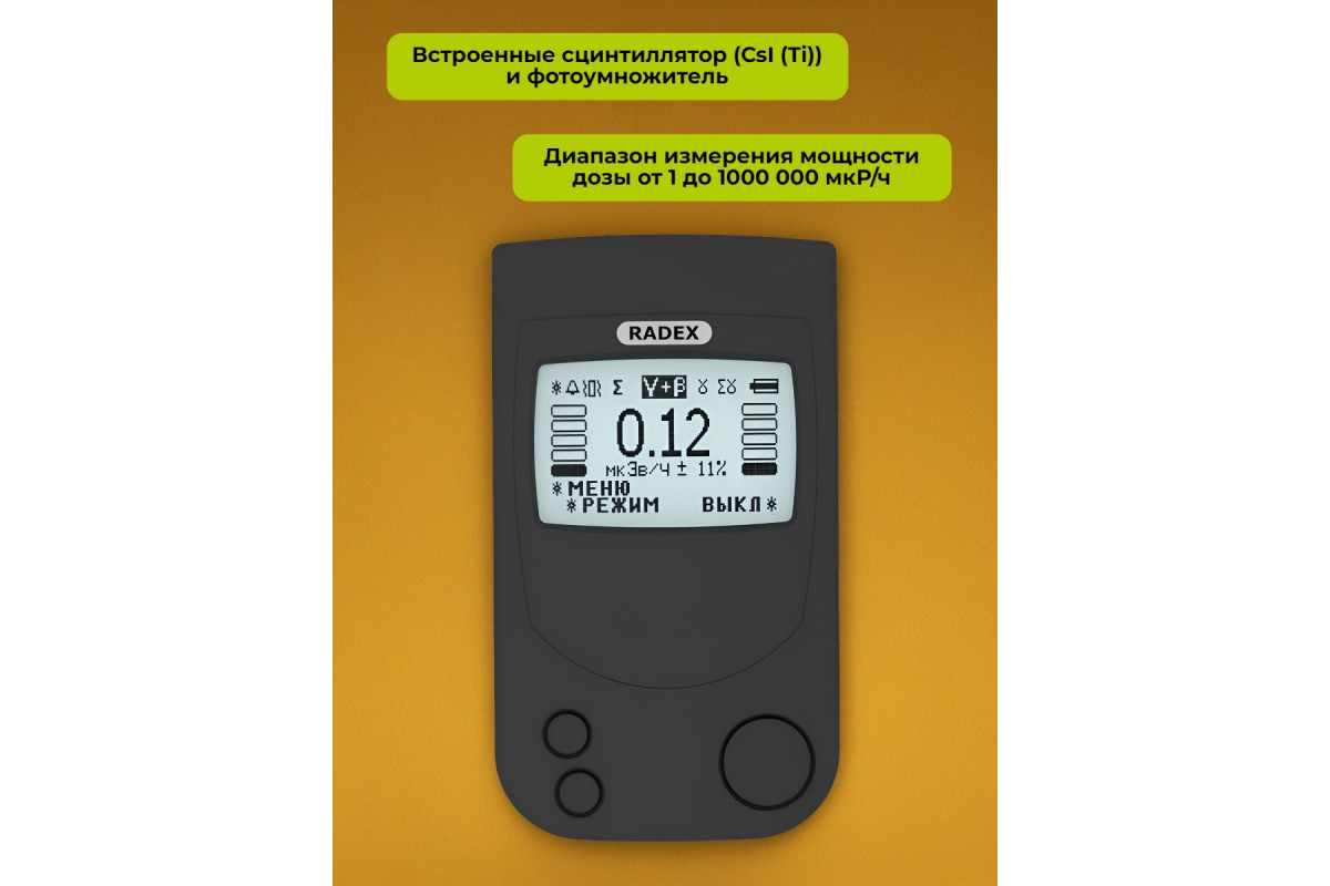 Данное устройство разработано российскими специалистами и предназначено для бытовых нужд. Прибор может быстро находить объекты с повышенным уровнем радиации, проверять помещения и земельные участки. У данной модели 3 режима работы: мощность дозы (МЭД), накопленная доза и поиск.