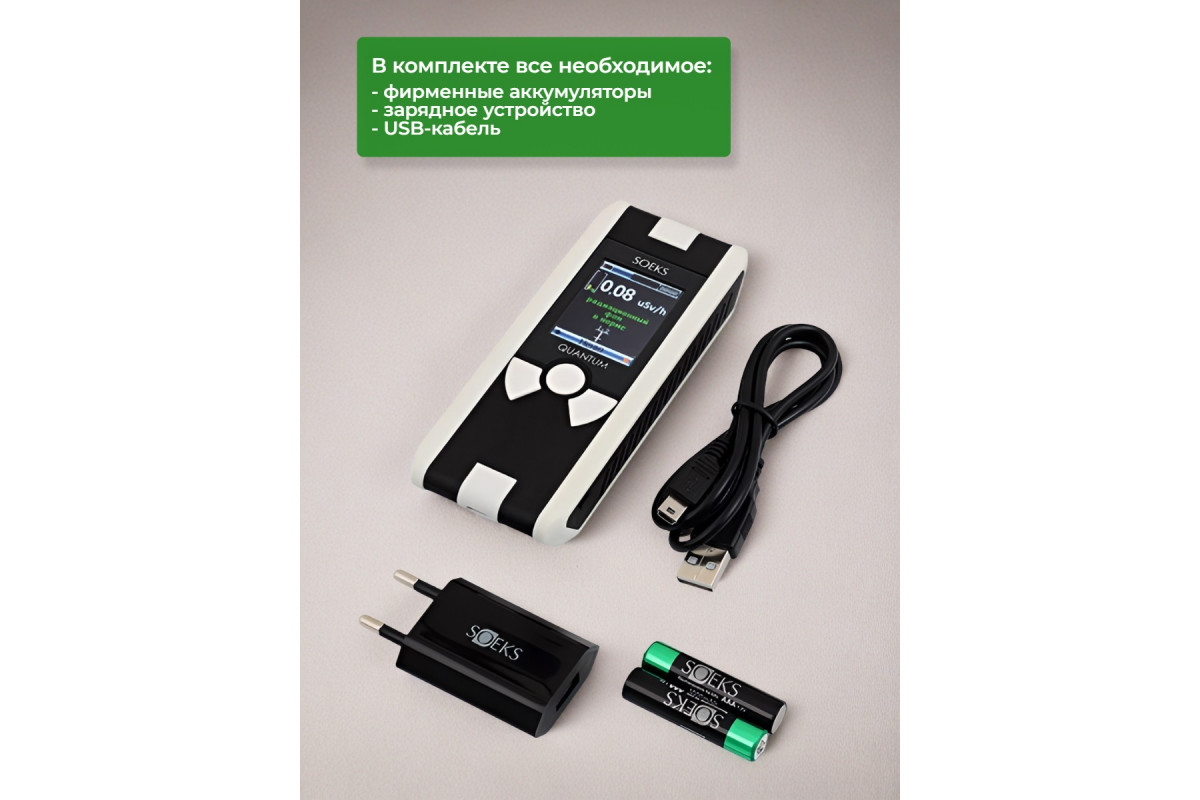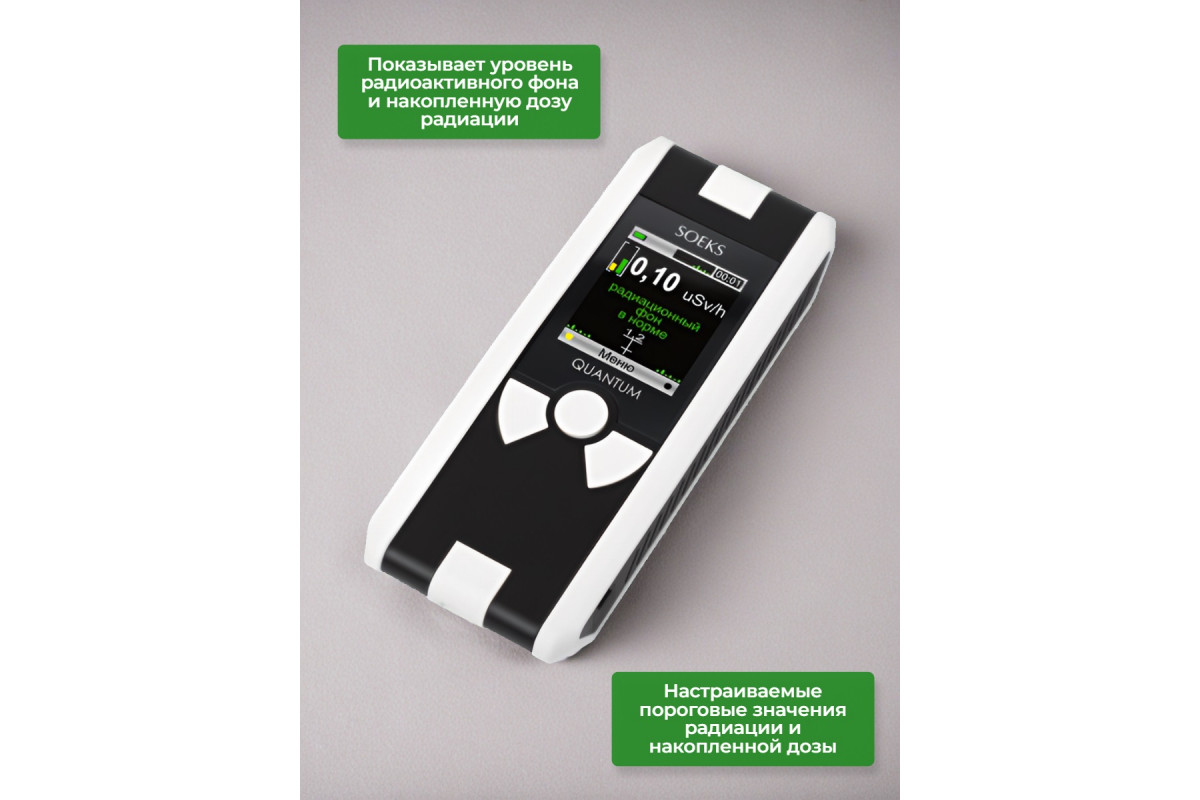 Дозиметр радиации СОЭКС/SOEKS "Quantum" отличается применением сразу двух встроенных счетчиков Гейгера-Мюллера, благодаря которым работает точнее и быстрее моделей с одним датчиком. В дополнение к измерению текущего уровня радиации может выполнять функцию счетчика накопленной дозы, по которой можно более точно установить безопасное время пребывания в условиях повышенного фона. Значения, измеренные за сутки, сохраняются в памяти прибора и могут отображаться на встроенном цветном ЖК-экране в графическом режиме, что упрощает восприятие информации. Для более удобного просмотра архива прибор также поддерживает синхронизацию с компьютером для выгрузки на него информации, установки новых версий прошивок и пр. возможностей.