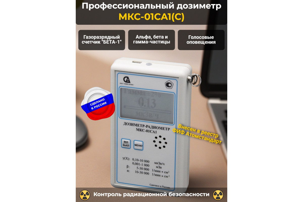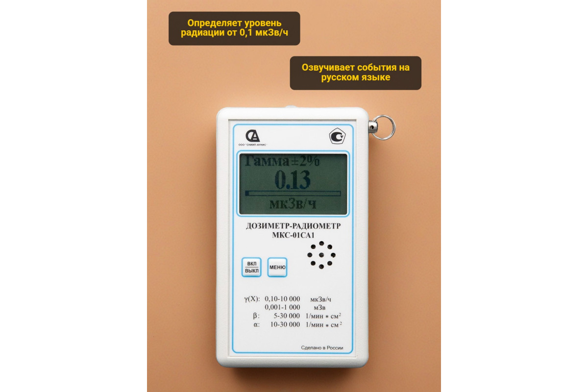 Четыре типа сигнализации, включая речевое оповещение — у прибора "МКС-01СА1(С)" имеется звуковая, световая и вибрационная сигнализации, а также функция голосового оповещения о результатах измерения. Во время проведения измерений не всегда есть возможность смотреть на дисплей дозиметра, поэтому оповещение на русском языке является очень важным. Устройство имеет 4 типа голосовых оповещений: "НОРМАЛЬНО", "ВНИМАНИЕ", "ОПАСНО" и "ТРЕВОГА".