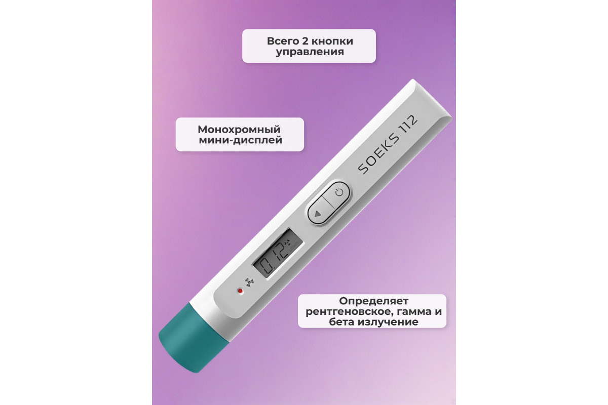 Дозиметр "СОЭКС 112" не является профессиональным прибором для измерения уровня радиации и предназначен для бытового использования. Однако точность его измерений практически не уступает профессиональным моделям! Прибор фиксирует значения рентгеновского излучения, а также излучений типа гамма и бета. Он может работать в режиме измерения радиационного фона или в режиме измерения накопленной дозы. Все это позволяет использовать дозиметр в быту для оценки потенциальной опасности облучения радиацией от различных предметов или участков местности. При этом можно производить незаметные измерения благодаря компактным размерам дозиметра.
