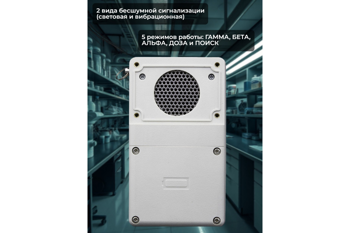 Бесшумное оповещение о высоких дозах радиации — при обнаружении радиации, превышающей заданный порог, прибор может оповестить голосовой подсказкой или использовать бесшумные виды сигнализации. Всего у данного устройства 2 таких типа сигнализации: свет и вибрация корпуса. В некоторых случаях использование звукового оповещения нежелательно (например, при работе в помещениях, где нужно соблюдать тишину). В таком случае можно отключить голосовое уведомление и пользоваться бесшумными видами сигнализации.