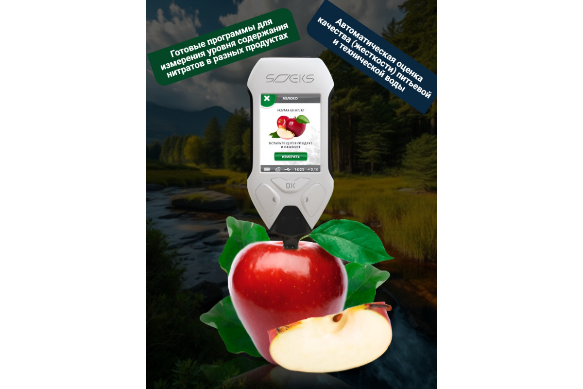 Композитный зонд . Для более точного измерения уровня нитратов в продуктах прибор получил зонд нового типа, который производит замер не в одной, а в нескольких точках продукта. Кроме того, для проведения теста на нитраты при различной температуре в зонд встроен термокомпенсатор, позволяющий получать точные данные не только при комнатной температуре.