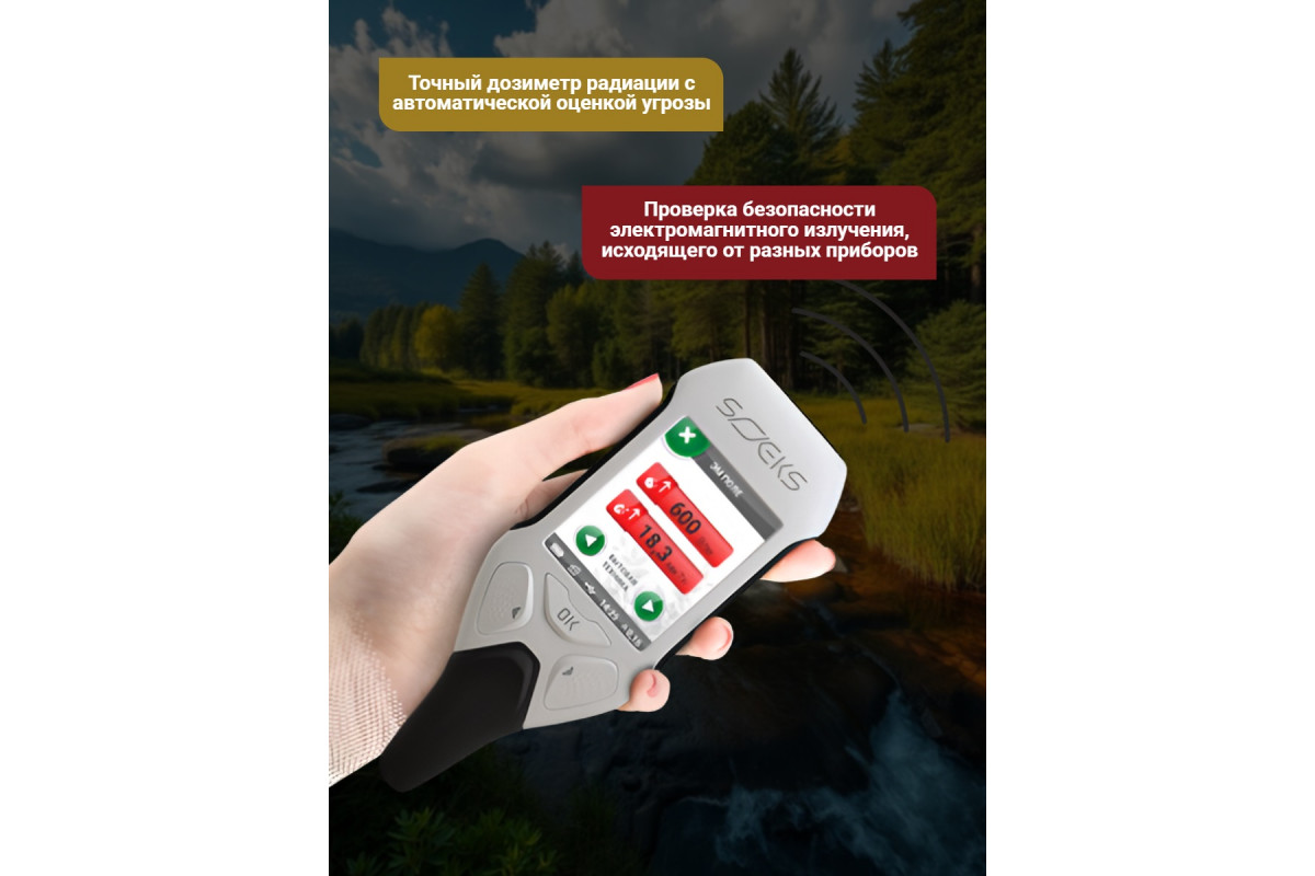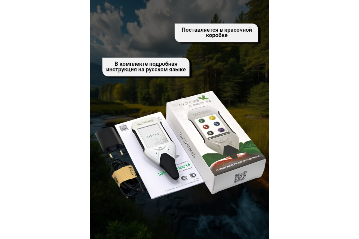Универсальный прибор 4-в-1 . Встроенный нитратомер поможет определить безопасность продуктов питания (мяса, овощей, фруктов, детских пюре), измеритель жесткости воды подскажет ее безопасность для здоровья, дозиметр поможет выявить радиационные предметы (стены зданий, вещи, пищевые продукты), а электромагнитный детектор определит вредные электроприборы.